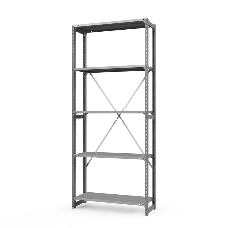 - Стойки и полки соединяются между собой без болтов. Полки крепятся на кронштейны, при этом для сборки не требуется специальных инструментов.